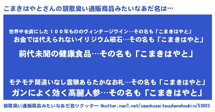 | 意味不明あだ名 | 『永久保存こまきはやと』 |