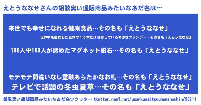 | ヘコむあだ名 | 『えとうななせ(笑)』『えとふぇ~』 |