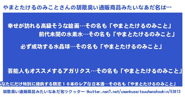 | 男性向けラノベタイトル風あだ名 | 『やまとたけるのみことの憂鬱』 |