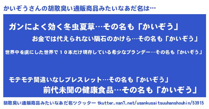 | ヘコむあだ名 | 『かいぞう(遠い目)』『かいっふぃ~』 |