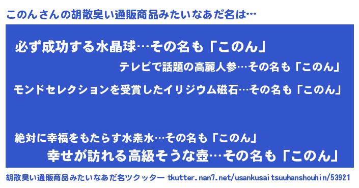 | 意味不明あだ名 | 『眠気覚ましガムこのん味』『自称このん』 |