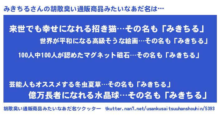 | 欧米人風あだ名 | 『ダニエルみきちる』『マイケルみきちる』 |