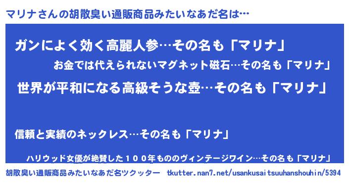 | 意味不明あだ名 | 『もやし科マリナ属』『自称マリナ』 |