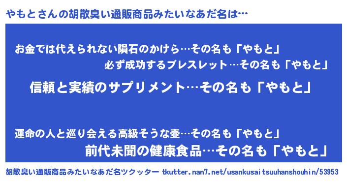 | 意味不明あだ名 | 『とにかく怪しいやもと』 |