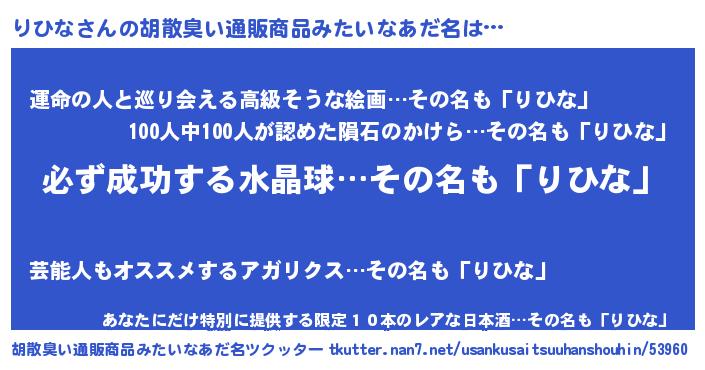 | 欧米人風あだ名 | 『マイケルりひな』『りひなクリステル』 |