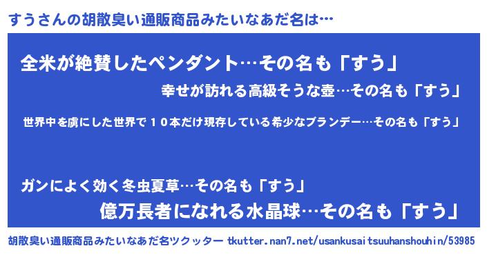 | 意味不明あだ名 | 『住所不定無職すう(86歳)』『ペロリンすう』 |