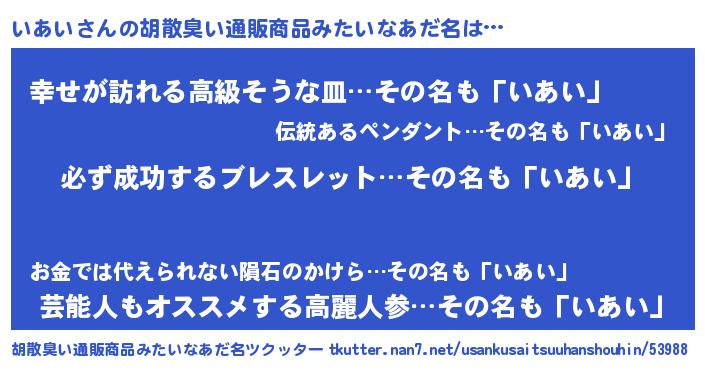 | ヘコむあだ名 | 『いあにー』『つくし』『いあお』 |
