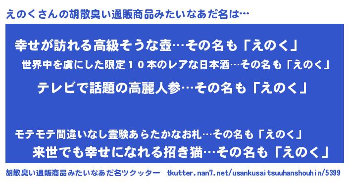 | 男性向けラノベタイトル風あだ名 | 『転生したらえのくだった件』 |