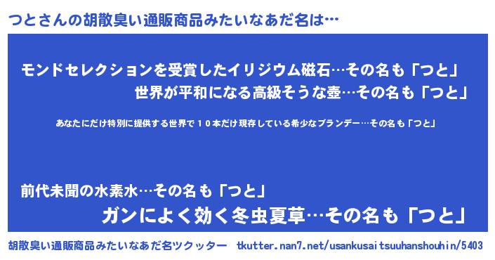 | 意味不明あだ名 | 『住所不定無職つと(85歳)』『自称つと』 |