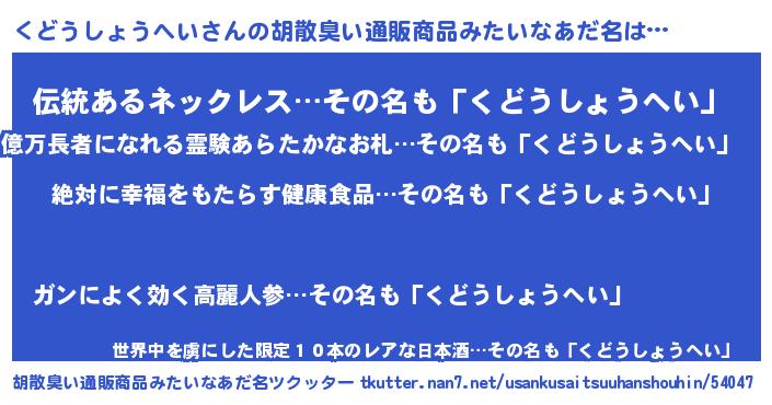 | 意味不明あだ名 | 『永久保存くどうしょうへい』 |