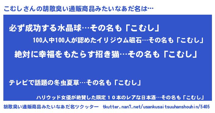 | ヘコむあだ名 | 『こむし(笑)』『こむにゅー』『牛乳』 |