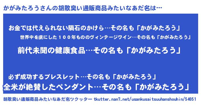 | 意味不明あだ名 | 『永久保存かがみたろう』 |