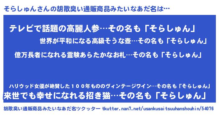 | ヘコむあだ名 | 『そらっふぃ~』『そらしゅん(笑)』 |