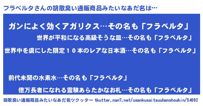 | 意味不明あだ名 | 『住所不定無職フラベルタ(43歳)』 |
