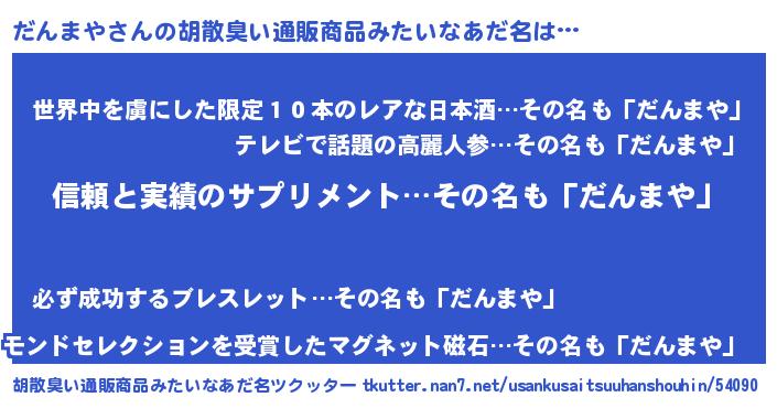 | 男性向けラノベタイトル風あだ名 | 『ダンジョンにだんまやを求めるのは間違っているだろうか』 |