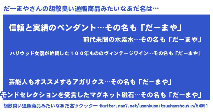 | ヘコむあだ名 | 『だーを』『だーまや(小並感)』 |