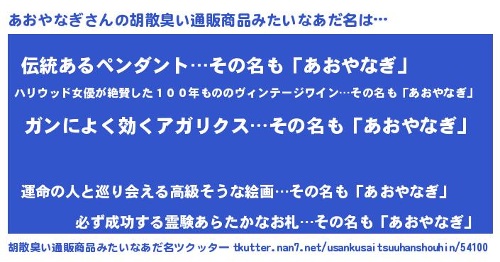 | ヘコむあだ名 | 『あお太郎』『あおもー』『つくし』 |
