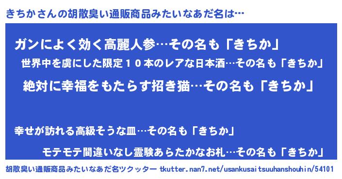 | 意味不明あだ名 | 『永久保存きちか』『自称きちか』 |