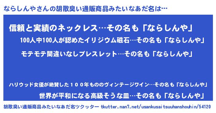 | ヒーロー風カッコイイあだ名 | 『スーパーナラシンヤ』『魔戒騎士ナラ』 |