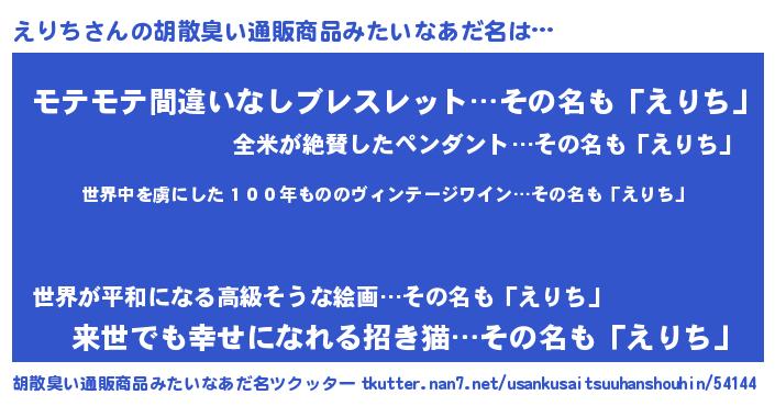 | 意味不明あだ名 | 『住所不定無職えりち(3歳)』 |