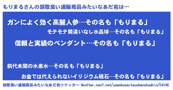 | 意味不明あだ名 | 『とにかく怪しいもりまる』 |