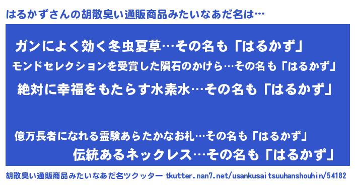 | 男性向けラノベタイトル風あだ名 | 『はるかずという概念が存在しない退屈な世界 』 |