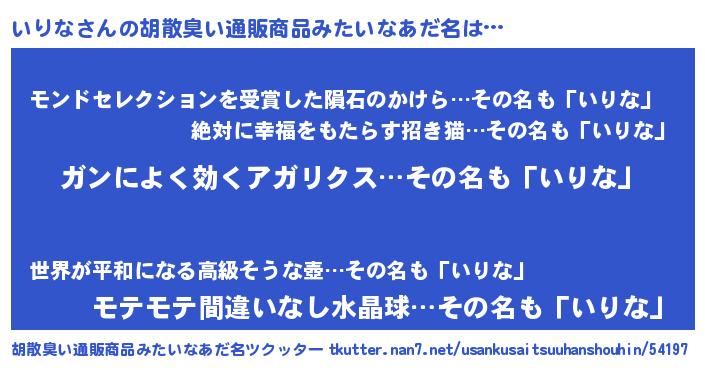 | 恥ずかしいあだ名 | 『イリナデラックス』『プリティーいりな』 |
