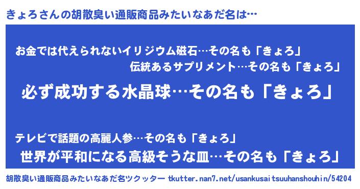 | ヒーロー風カッコイイあだ名 | 『スーパーキョロ』『愛の使者きょろ』 |
