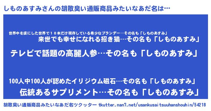 | 意味不明あだ名 | 『自称しものあすみ』 |