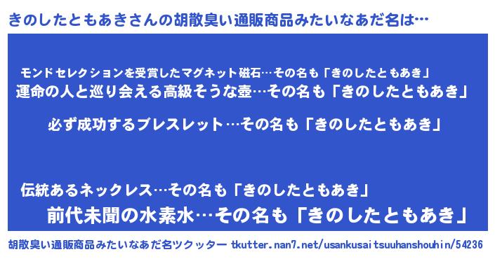 | ヘコむあだ名 | 『きのにー』『きのしたともあき(笑)』 |