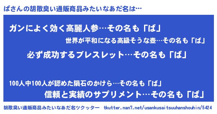 | 男性向けラノベタイトル風あだ名 | 『ばの憂鬱』『魔法科高校のば』 |