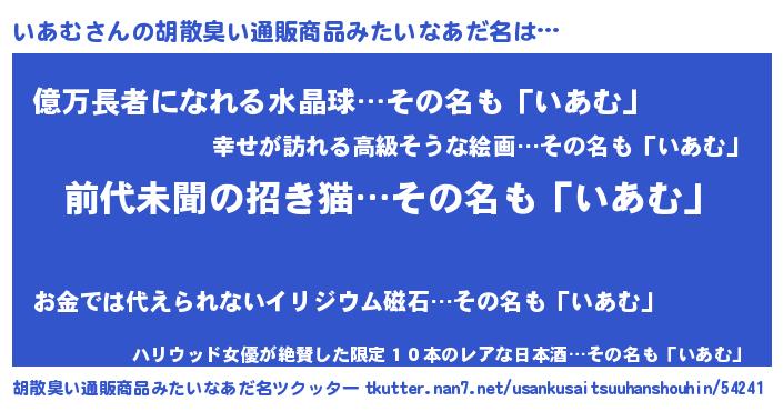 | ヘコむあだ名 | 『いあむ(小並感)』『いあにゅー』 |