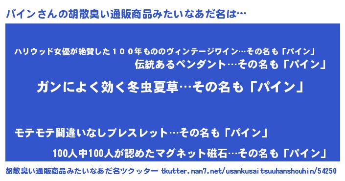 | 意味不明あだ名 | 『自称パイン』『たけのこ科パイン属』 |