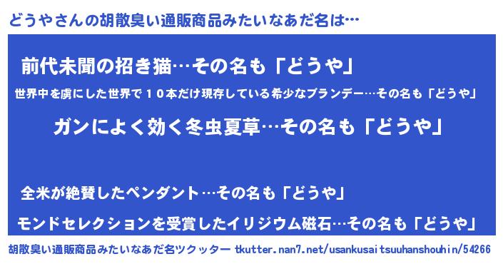 | ヘコむあだ名 | 『どうや(遠い目)』『どうお』 |