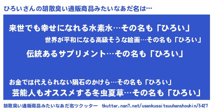 | 意味不明あだ名 | 『とにかく怪しいひろい』『自称ひろい』 |