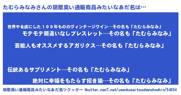 | 意味不明あだ名 | 『自称たむらみなみ』 |