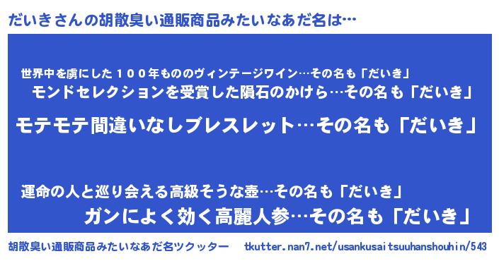 だいきさんの胡散臭い通販商品みたいなあだ名をツクッター!