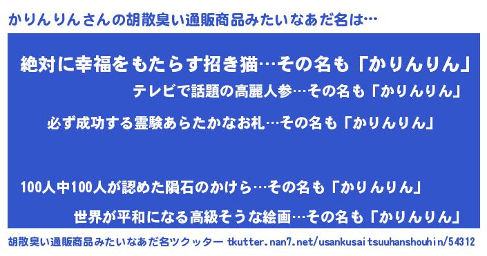 | 男性向けラノベタイトル風あだ名 | 『かりんりんの憂鬱』『緋弾のカリンリン』 |