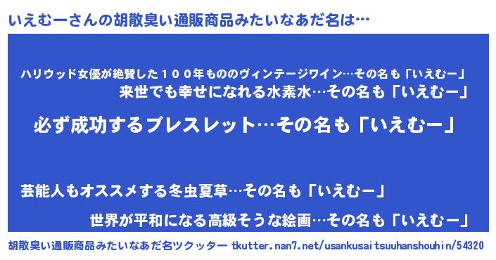 | 意味不明あだ名 | 『ペロリンいえむー』『永久保存いえむー』 |