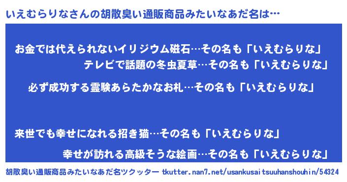 | 伝説のあだ名 | 『伝説のスナイパーいえむらりな』 |