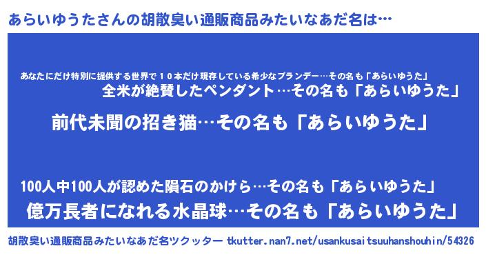 | 意味不明あだ名 | 『永久保存あらいゆうた』 |