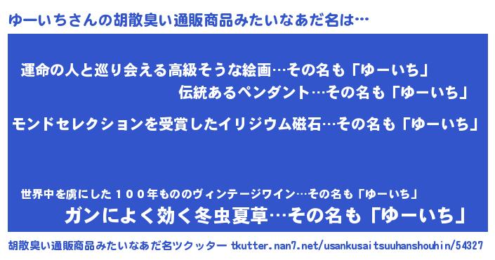 | ヒーロー風カッコイイあだ名 | 『慈愛の使者ゆーいち』『銀牙騎士ユー』 |