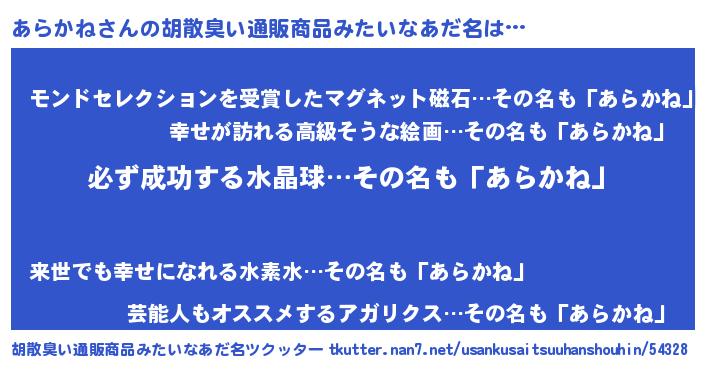 | 恥ずかしいあだ名 | 『プリティーあらかね』『あらっちょ』 |