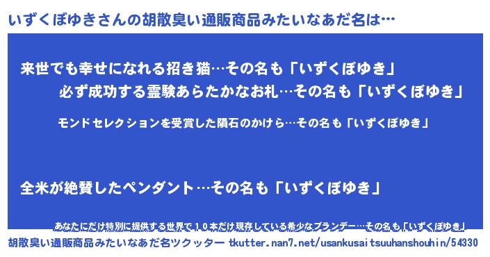 | ヘコむあだ名 | 『いずくぼゆき(遠い目)』『いずにー』 |
