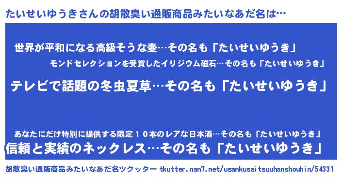| 意味不明あだ名 | 『自称たいせいゆうき』 |
