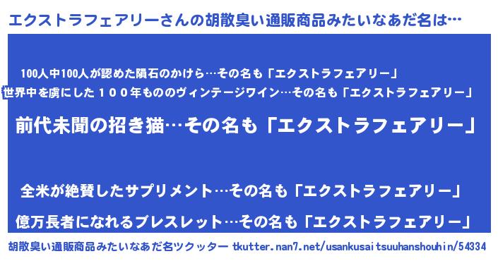 | 男性向けラノベタイトル風あだ名 | 『エクストラフェアリー~年齢イコール彼女いない歴の魔法使い~』 |