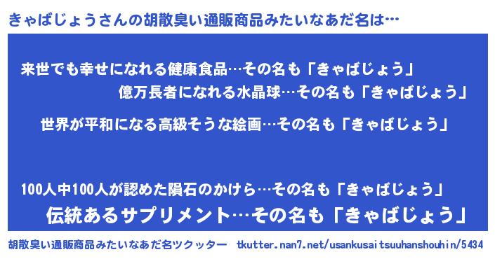 | ヘコむあだ名 | 『豆乳』『きゃばじょう(笑)』 |