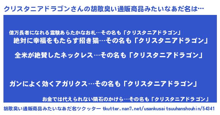 | 意味不明あだ名 | 『とにかく怪しいクリスタニアドラゴン』 |