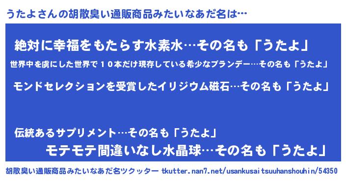 | ヘコむあだ名 | 『うたよ(苦笑)』『うたにー』『豆乳』 |