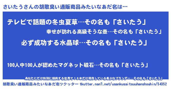 | ヘコむあだ名 | 『さいにゅー』『なまこ酢』 |